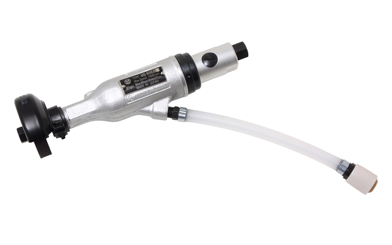 Air connectivity is straightforward with an NPT 1/4-inch inlet thread and a recommended hose size of 9.5 mm (3/8 in). Average air consumption is approximately 0.6 m³/min (22 ft³/min), ensuring efficient pneumatic operation. The UG-65EBL also incorporates a rear exhaust system to maintain a cleaner work environment.