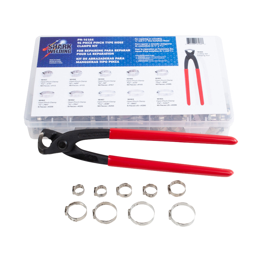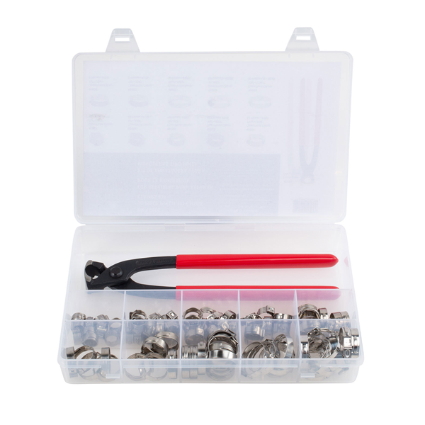 91 Piece Pinch type Hose Clamp Set with Crimping Tool included.