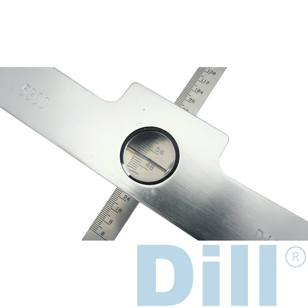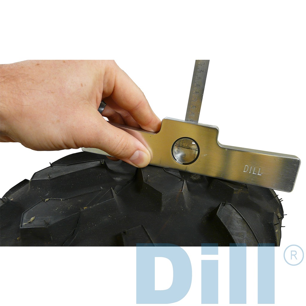 The 7-3/4" bar easily spans the tread lugs of OTR tires. Magnified sight glass for readability. Calibrated 0" to 6" in 1/32" increments (0 to 150mm). Features a steel bar and machined aluminum frame. The slide bar stores in the back of the frame when not in use.