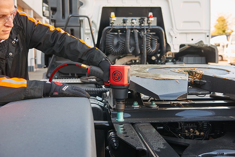 The Chicago Pneumatic 3/4" Air Impact Gun is a high-performance tool engineered for demanding industrial and automotive applications. Delivering a maximum forward working torque of 1080 ft.lb and an impressive 1440 ft.lb in reverse, it offers consistent power without torque limitation, ensuring full force when needed. With a minimum forward torque of 300 ft.lb, it provides versatility across a range of tasks. Operating at a free speed of 6500 rpm and producing 1200 blows per minute, this impact gun is built for speed and efficiency.